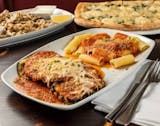 Mozzarella and grana padano with breaded eggplant, herb ricotta, and tomato sauce.